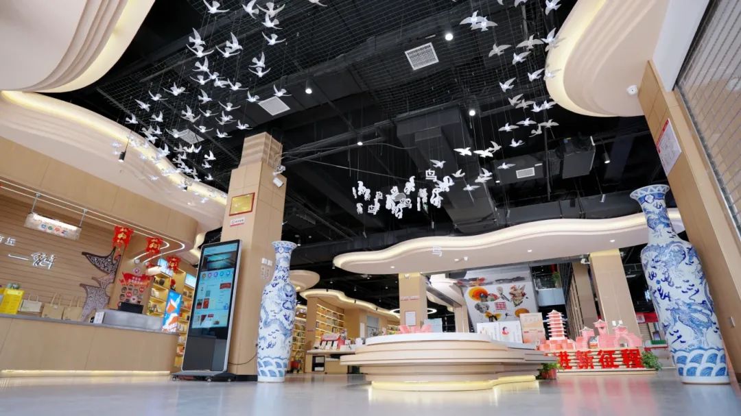 以“殷商文化”為核心的商丘市新華書店凱旋路店,營業(yè)面積達(dá)3000平方米,店內(nèi)陳列覆蓋社科、文學(xué)、藝術(shù)、科技、生活、少兒、教育等圖書4萬余種、10萬余冊,并設(shè)置了文化閱讀、多元文創(chuàng)、藝術(shù)展示、交流分享、AI自習(xí)室等多個專區(qū),是一個集文化學(xué)習(xí)、社交互動、文藝展覽于一體的多功能文化閱讀空間。在空間表達(dá)上,凱旋路店深挖地域文化元素,特別是“玄鳥生商”的甲骨文飛鳥造型環(huán)頂一樓整個大廳,藝術(shù)區(qū)的“梁園八景”古樸燈箱與文房四寶交相呼應(yīng)營造典雅文化氛圍,李白《梁園吟》的石壁雕刻讓很多前來的家長和孩子駐足欣賞、輕輕吟誦,以及“應(yīng)天文化講堂”活動專區(qū)舉辦的“朗讀者沙龍”“我是經(jīng)典傳誦人”等系列豐富閱讀活動,為讀者提供高品質(zhì)的文化體驗(yàn)。此外,凱旋路店積極探索“文化+科技”的創(chuàng)新融合,在三樓和負(fù)一樓打造的數(shù)智AI自習(xí)室和科普研學(xué)實(shí)踐基地即將落地,為讀者帶來智能化、趣味性的全新體驗(yàn)。